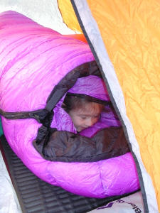 Dad's bag is warm, I not getting out.